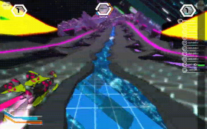Initially the racers were glued to the tracks and it gave a very rigid feel to the racers. I’ve gone back and added a full physics spring-mass calcluation on top of the physics body calculations. This gives a far better anti-grav feel.